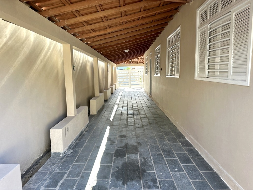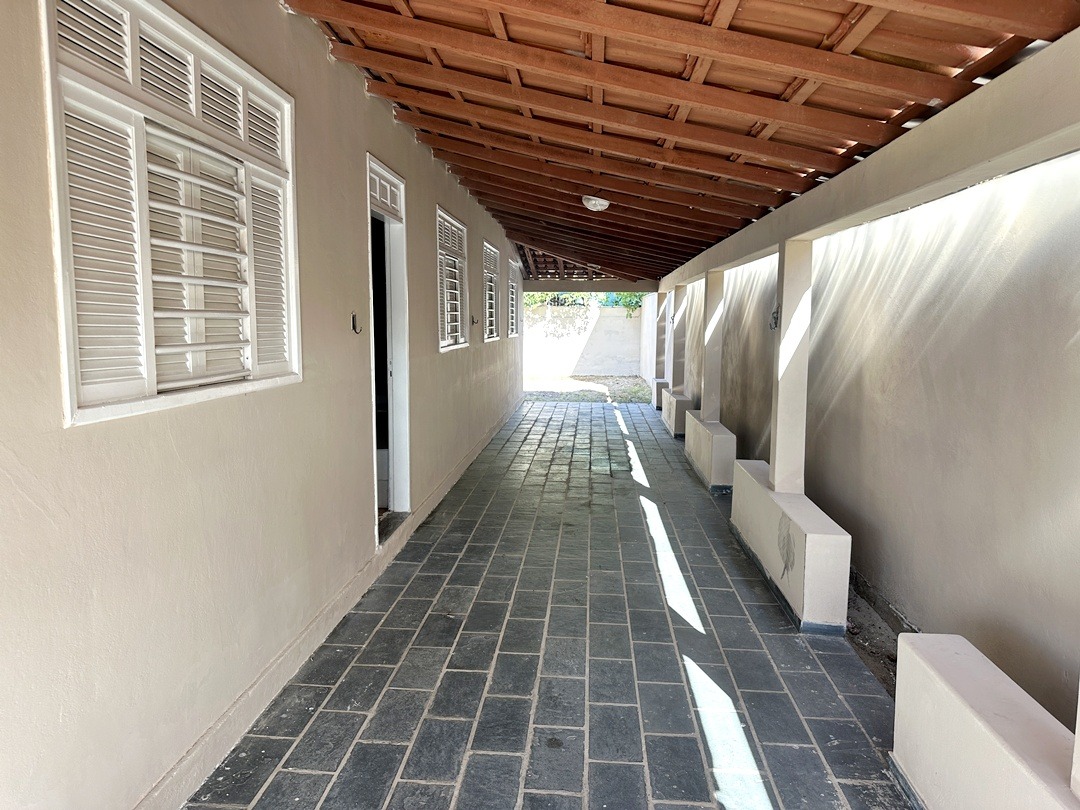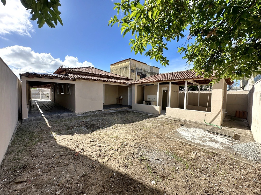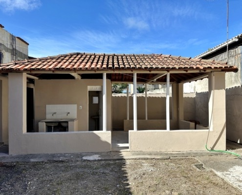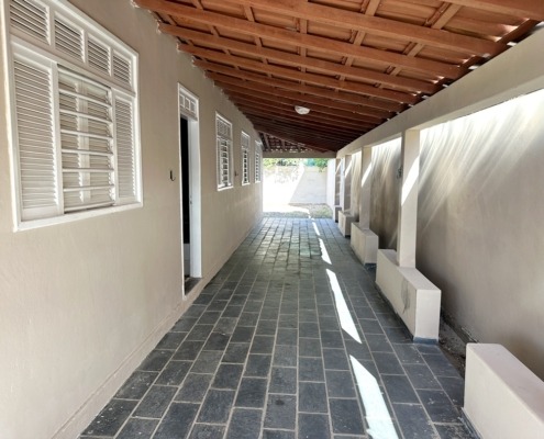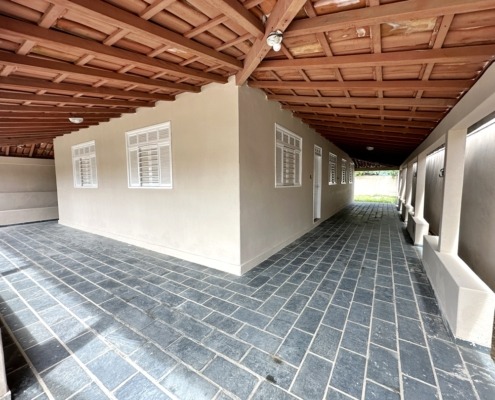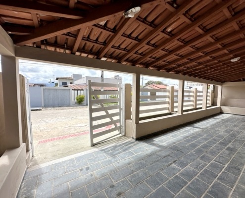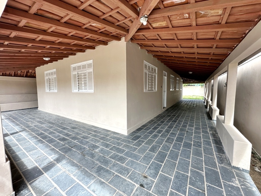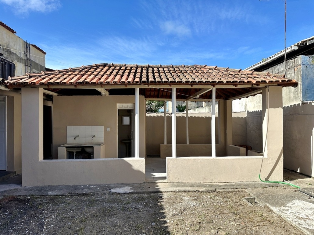 Varanda grande coberta e quintal grande com área coberta com banheiro social.