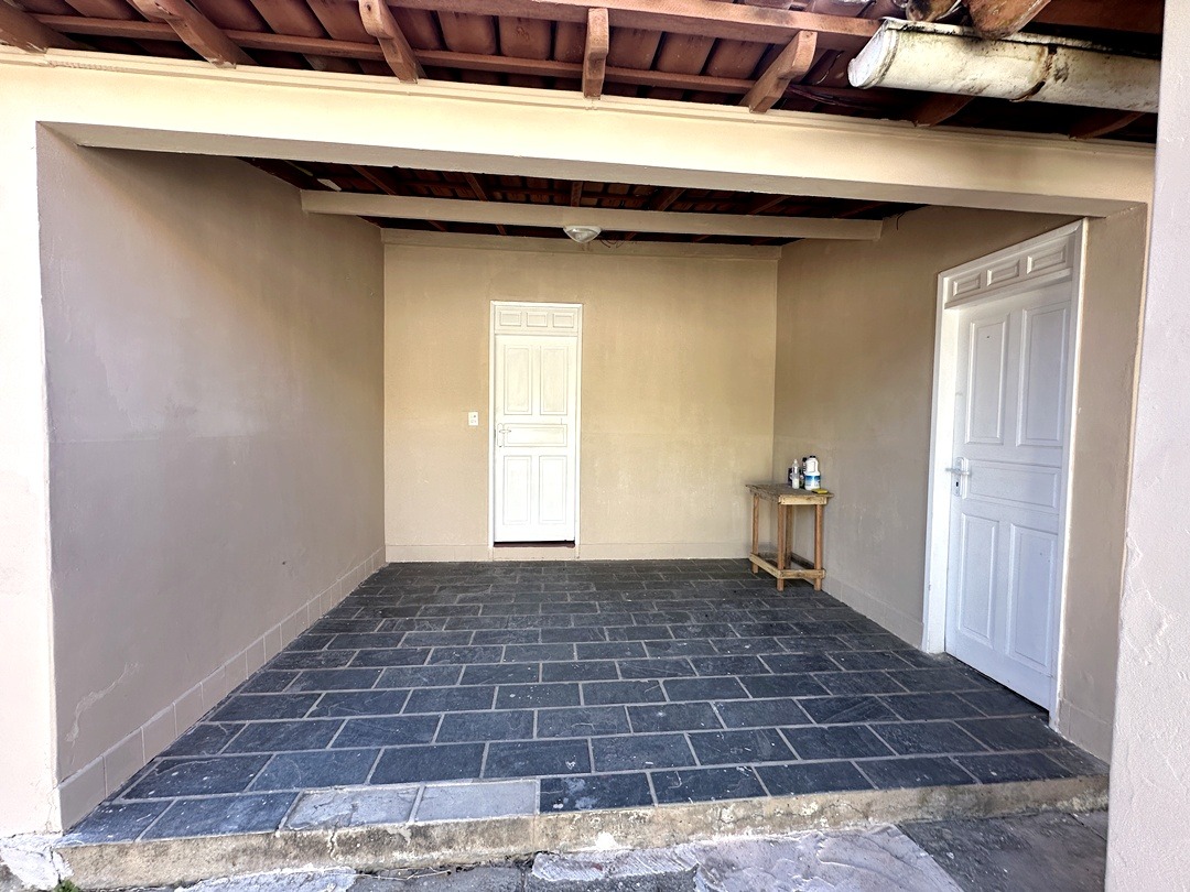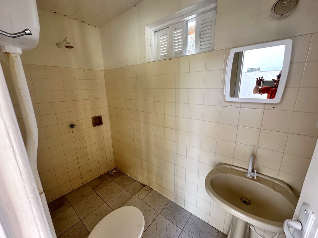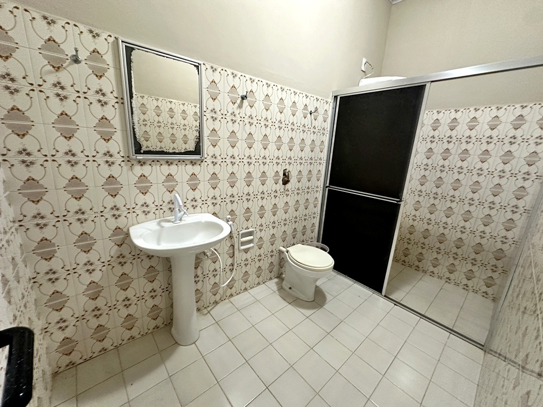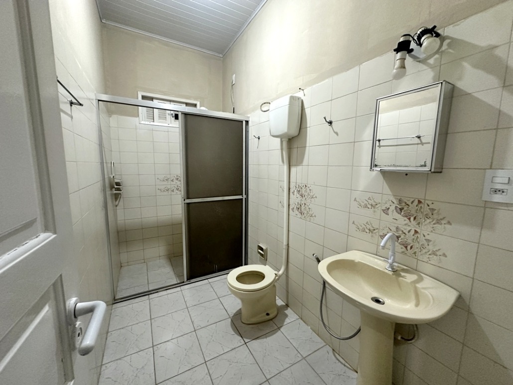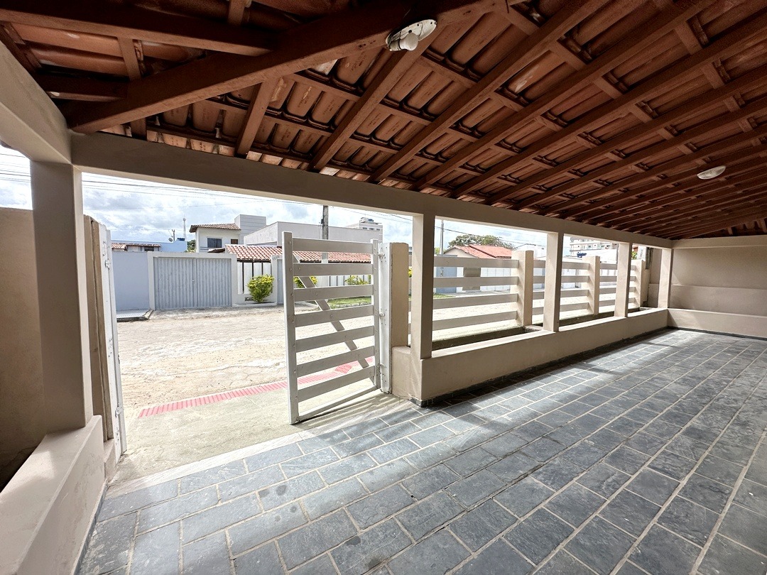 Varanda grande coberta e quintal grande com área coberta com banheiro social.