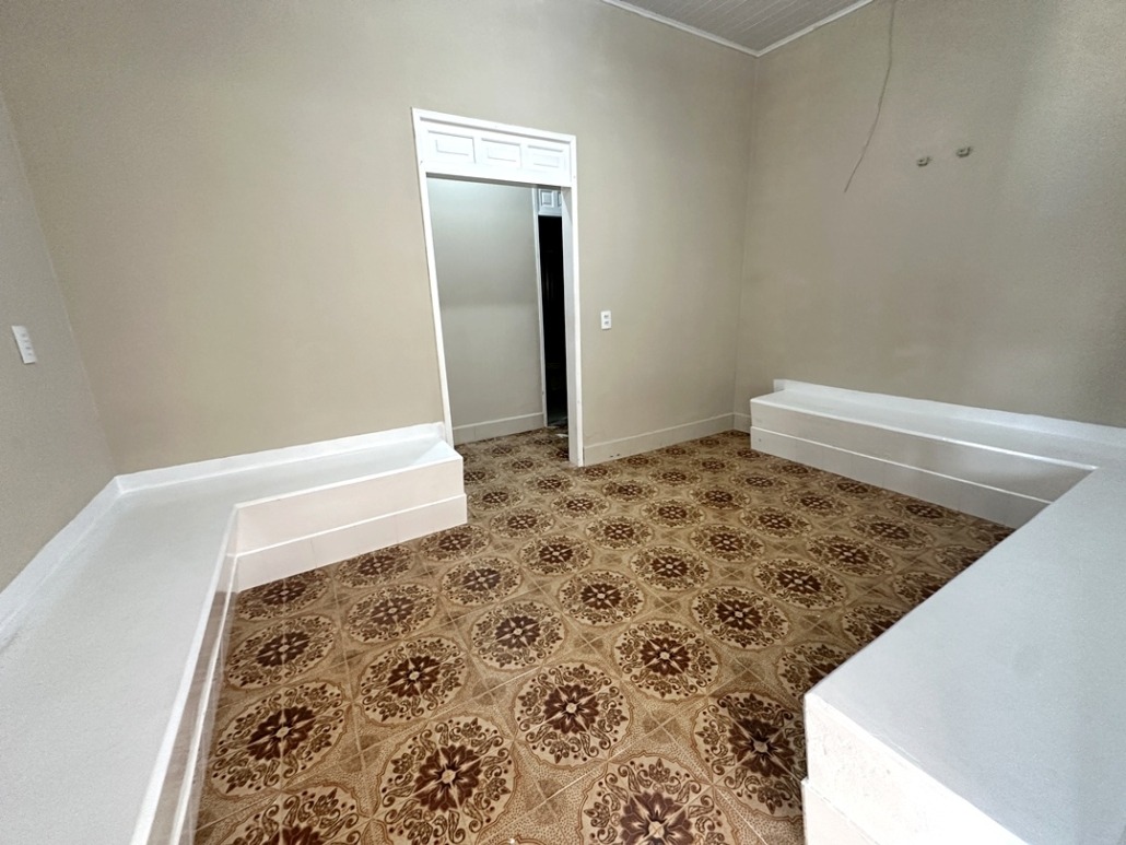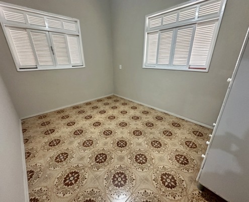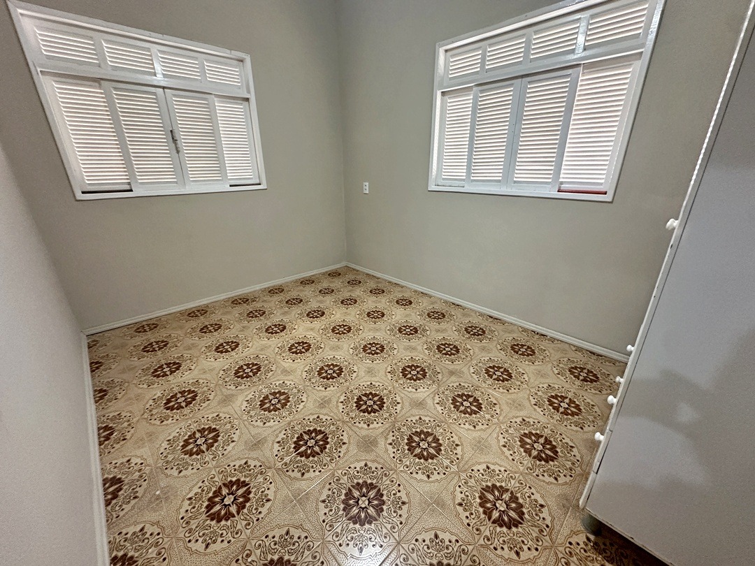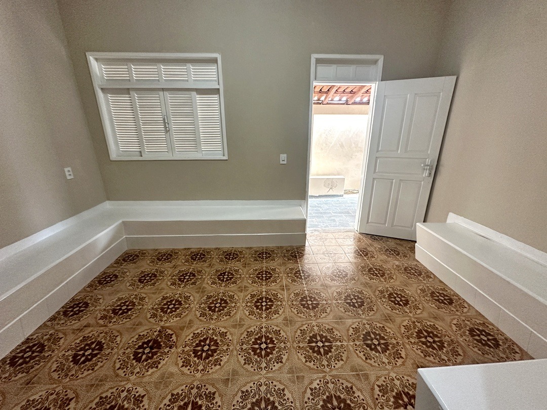 São 3 quartos sendo 1 com suíte, 2 banheiros sociais um interno e outro externo, sala e cozinha.