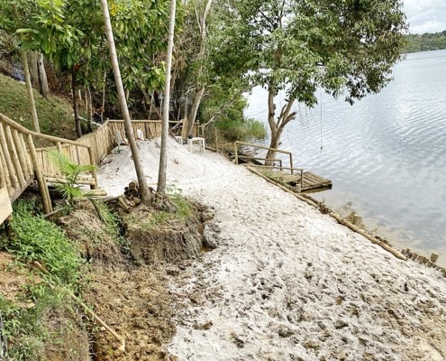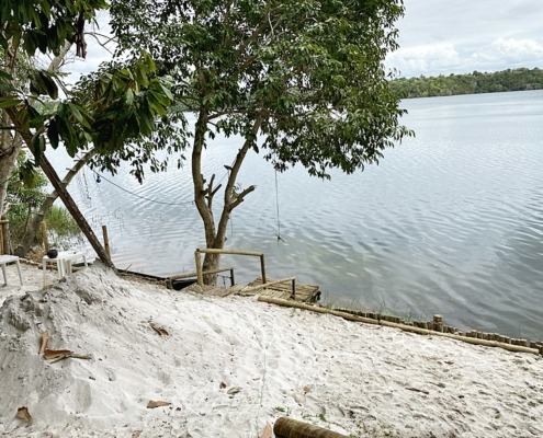 A praia da lagoa é com areia branca para combinar com as águas claras e assim se banhar e desfrutar do local para família toda se divertir.