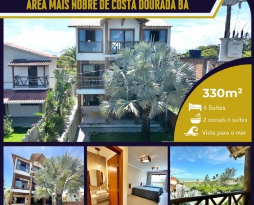 Situada na Rua Pernambuco em Costa Dourada BA próximo a Barracado Cláudio. O imóvel contém 6 suítes com vista para o mar, construída em um lote de 11m de frente x 30m de profundidade totalizando 330m².