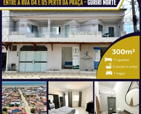 Pousada + casa + 2 pontos comerciais perto da praça de Guriri Norte e a 350m da praia, na melhor localização!
