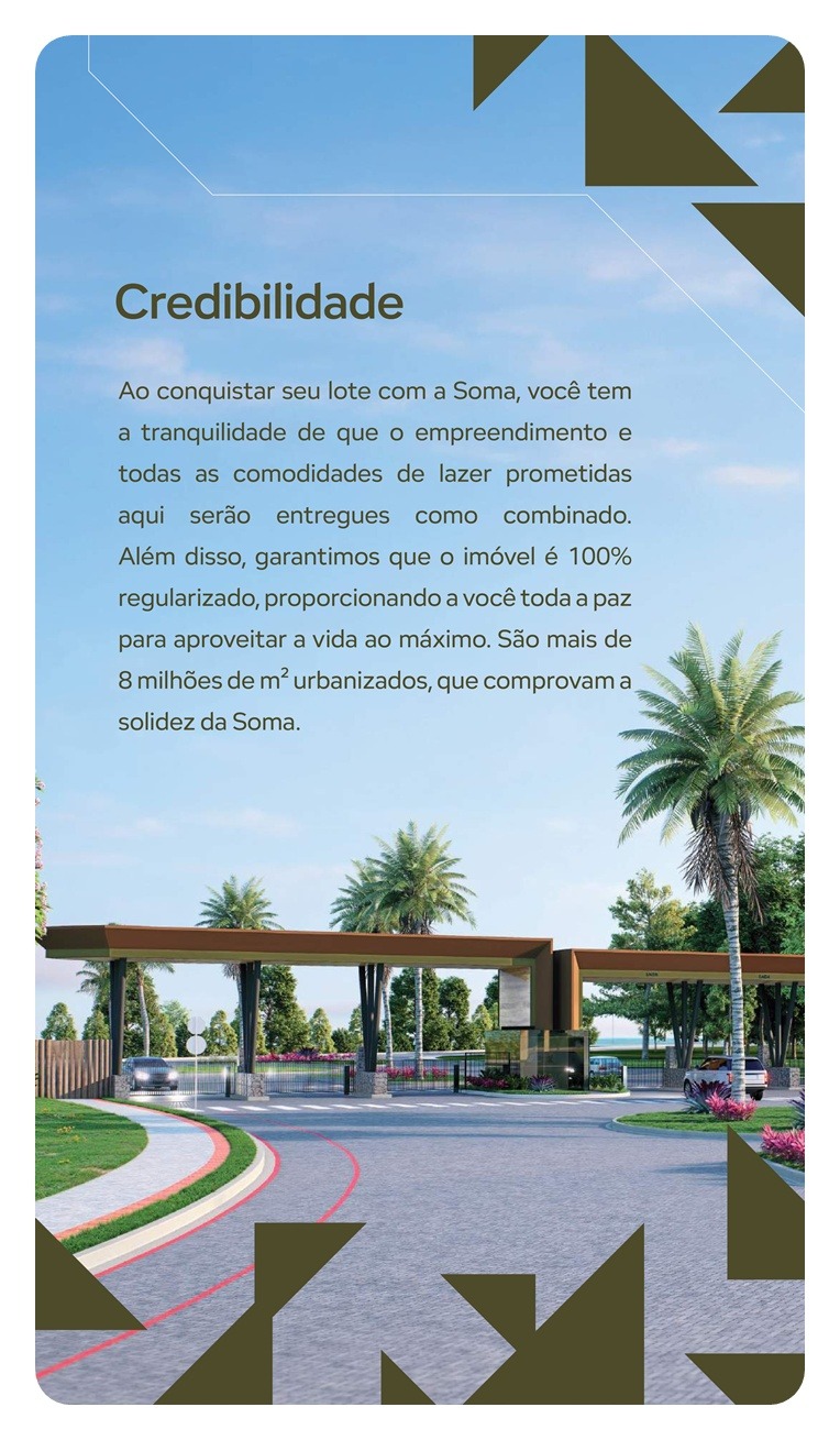 Lotes com metragem à partir de 360m², previsão de entrega em 10/2028.